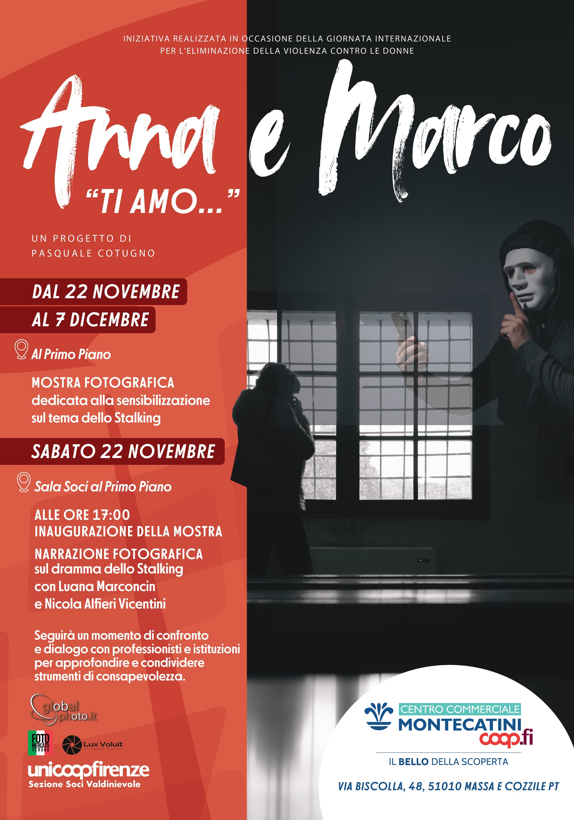 Anna e Marco "TI AMO...". Progetto dedicato alla sensibilizzazione sullo Stalking, lascia le terre Venete ed approda per la prima volta in Toscana. Dal 22 novembre al 7 dicembre presso la galleria al primo piano del Centro Commerciale Montecatini.